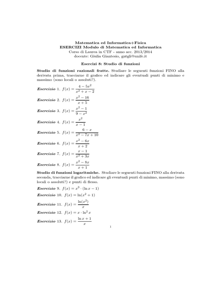 . Esercizi svolti sui massimi e i minimi relativi con funzioni a due variabili - Docsity ESERCIZI SULLE FUNZIONI - YouTube Esercizi risolti sulle funzioni suriettive