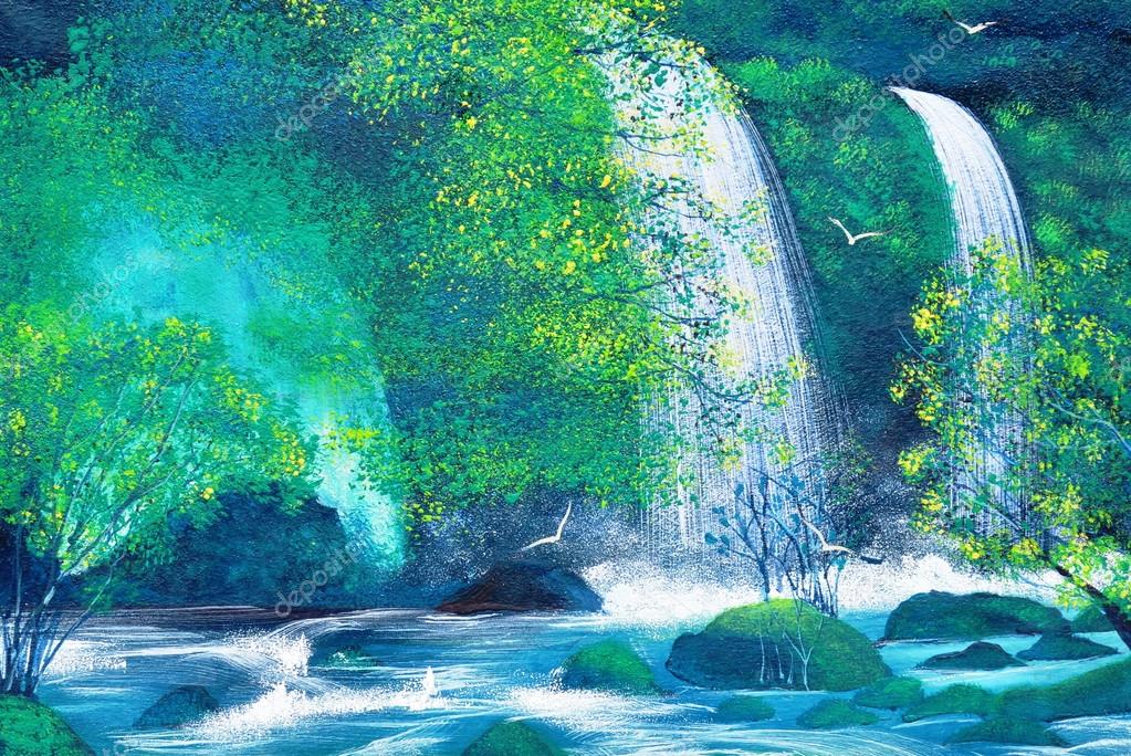 . Watercolor landscape painting - Waterfall forest - YouTube Digital Watercolor Painting Waterfall Forest Landscape Stock Illustration 1090974161 simple landscape step by step easy Archives - PRB ARTS